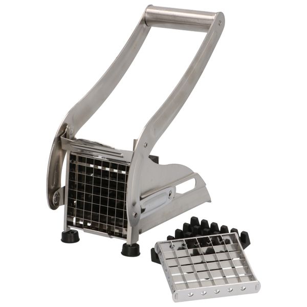 - Met twee scherpe, verwisselbare snijramen, een voor Vlaamse frieten en een voor Franse frietjes