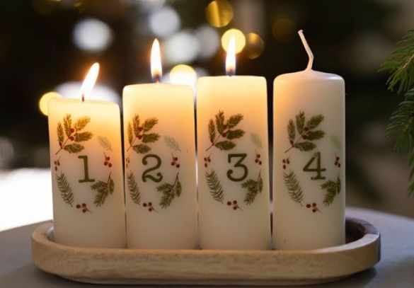 Adventskaars diner, decoratief, wit, Ø2,2 X 30 cm3 , 50 -