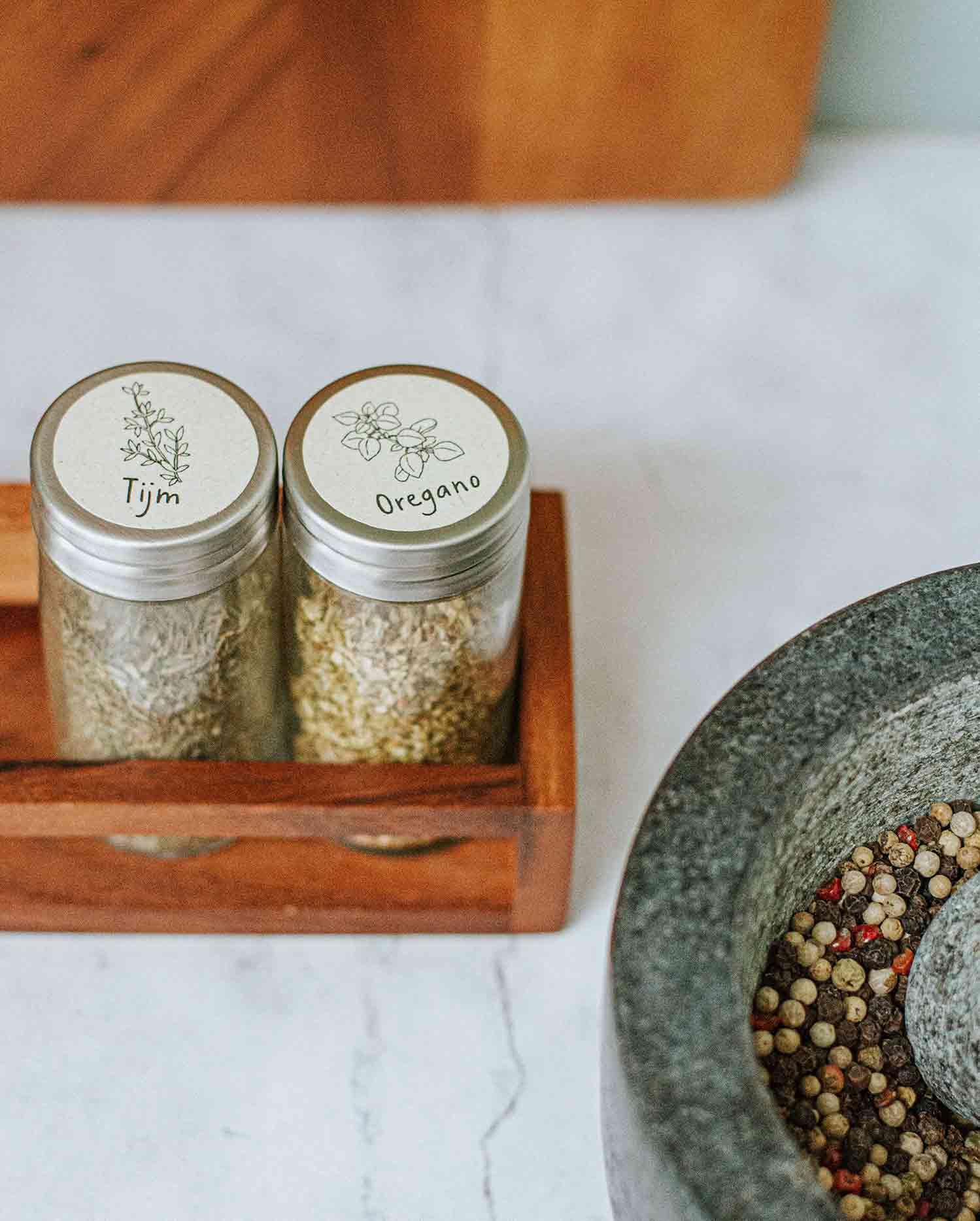 Wij worden heel erg blij van een fijn geordend kruidenkastje. Al die heerlijk geurende kruiden en specerijen in mooie kruidenpotjes nodigen uit om lekker te gaan koken en bakken. Een lekkere soep of quiche om samen van te genieten of een appeltaart om je buren mee te verrassen: als je iets kookt of bakt met aandacht maak je van eten echt een feestje!