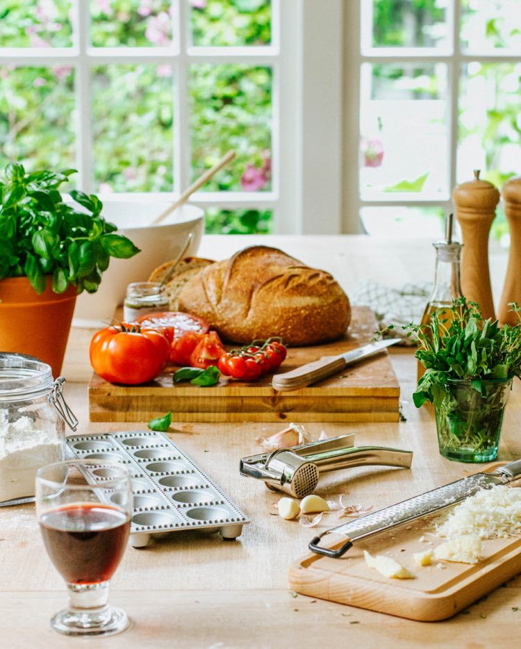 Onze Italiaanse keukenheld is toch wel de pastamachine van roestvrij staal. Je kunt er lasagne, tagliatelle (brede lintpasta) en tagliolini (smalle lintpasta) mee maken. En met de deegrollen die je gebruikt voor lasagne, kun je ook zelf ravioli maken. Wil je weten hoe je de pastamachine precies gebruikt? Je leest het hier.