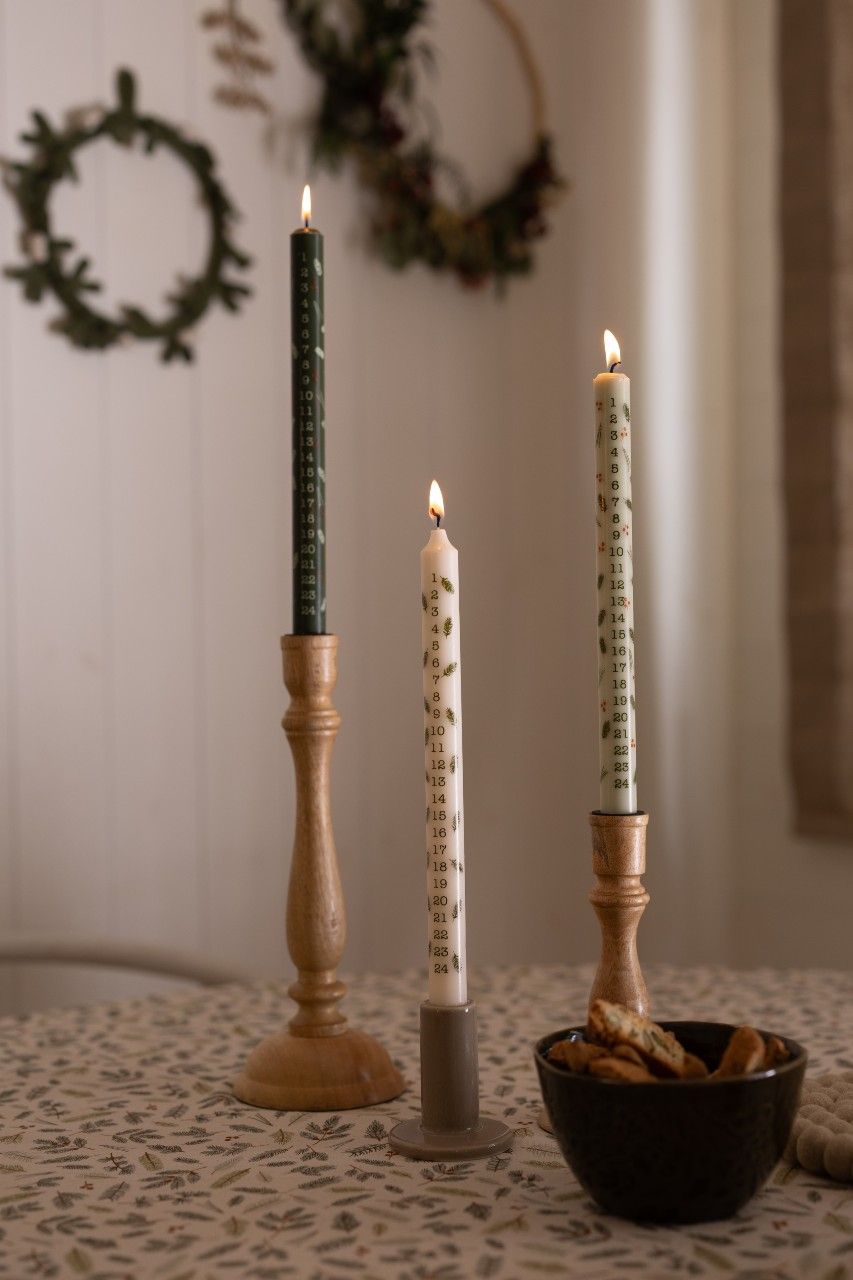 - Mix kandelaars van glas, porselein en hout en verdeel ze willekeurig over de tafel voor een speels effect.