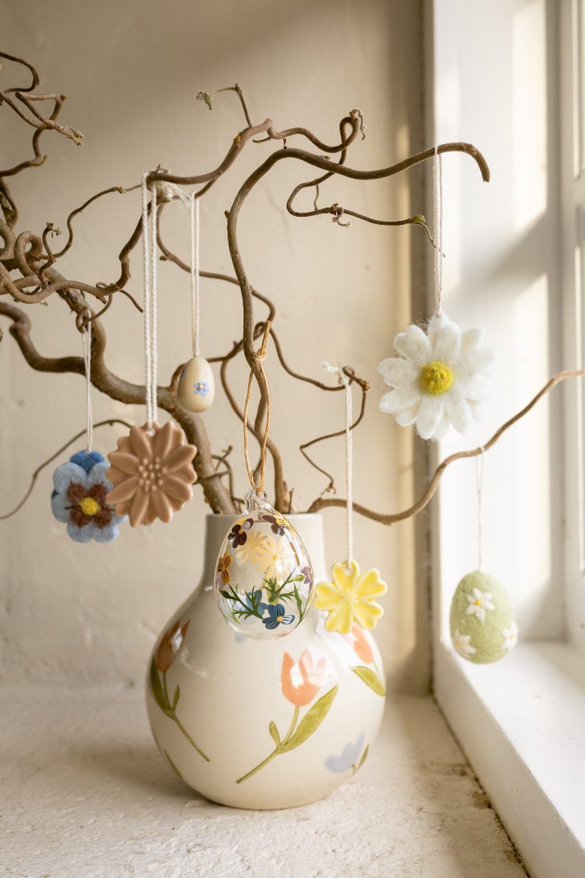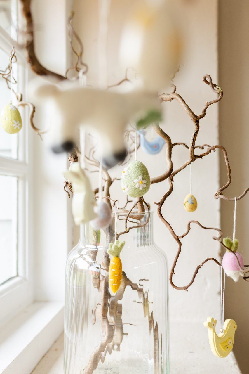 Met deze paaskrans maak je het met Pasen extra gezellig in huis. Met een paar mooie takken, verschillende hangers en kleine vaasjes met bloemetjes erin maak je er een echte eyecatcher van!