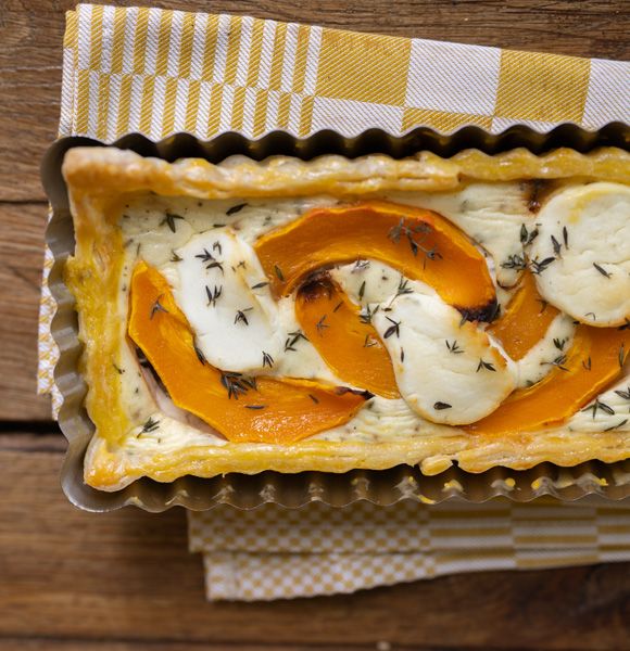 Quiche met pompoen en geitenkaas