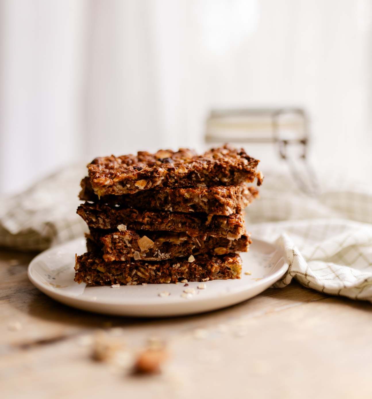 - Snijd in repen en bewaar je zelfgemaakte granolarepen luchtdicht op kamertemperatuur.