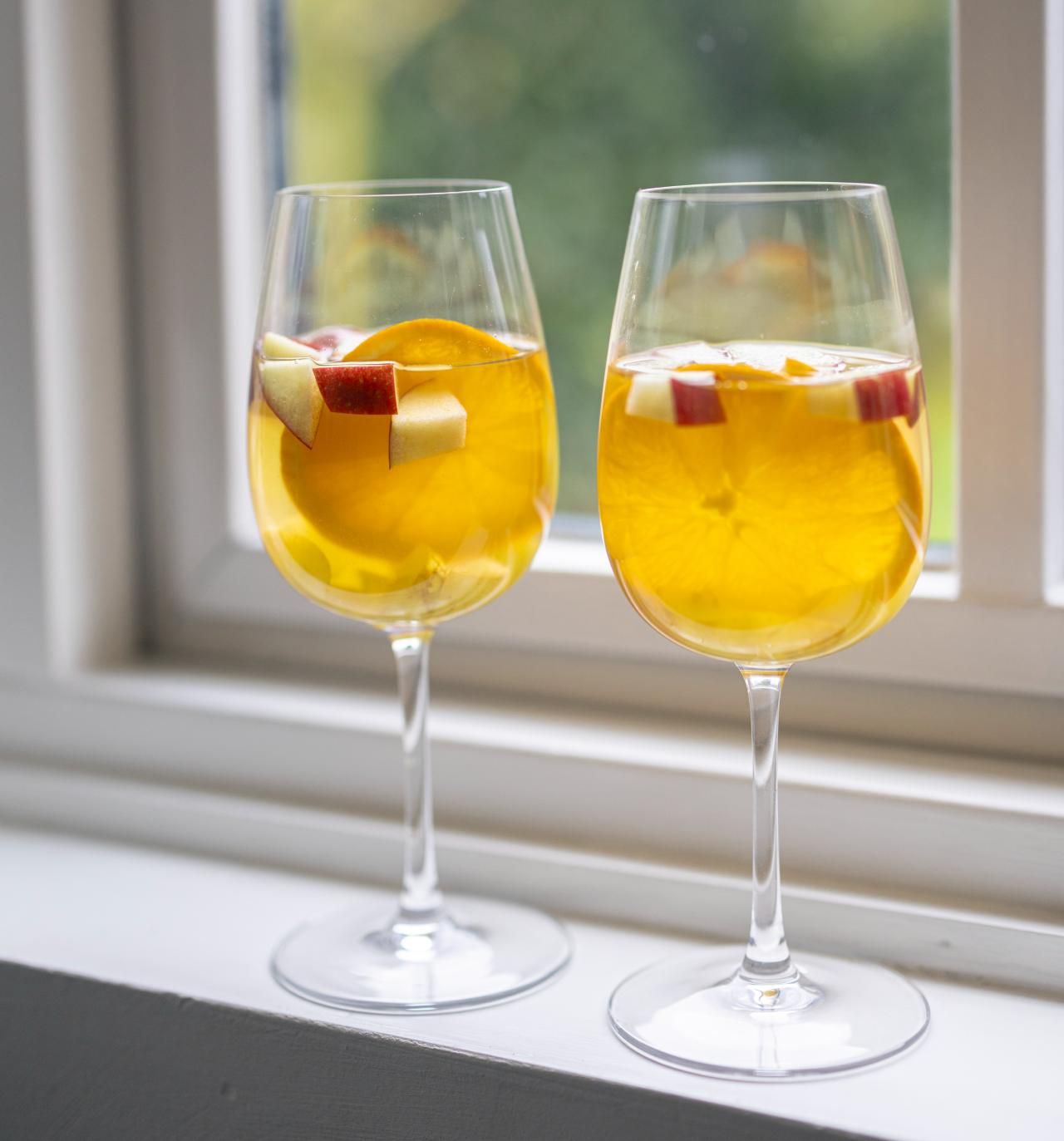 - Serveren: schenk de punch in mooie glazen en doe in elk glas een sinaasappelschijfje, appelblokjes en een paar gehalveerde druiven.