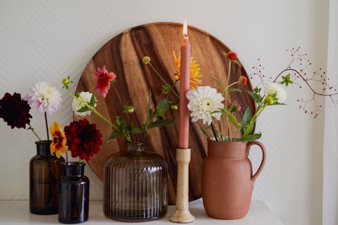 Om te genieten van bloemen heb je geen hele bos nodig. Met een paar bloemen in meerdere vaasjes, creëer je een mooi stilleven.
