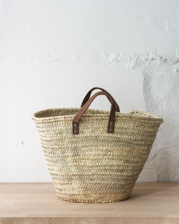 Onze manden en tassen uit Marokko zijn gemaakt van het palmblad van de Dwergpalm. In hun natuurlijke groeiproces verliezen deze bomen het hele jaar door bladeren. Deze worden verzameld, verschillende malen met zuiver water gereinigd en vervolgens in de zon gedroogd. De gedroogde bladeren worden met de hand uitgerekt en plat gemaakt en vervolgens worden onze manden en tassen ervan gevlochten.