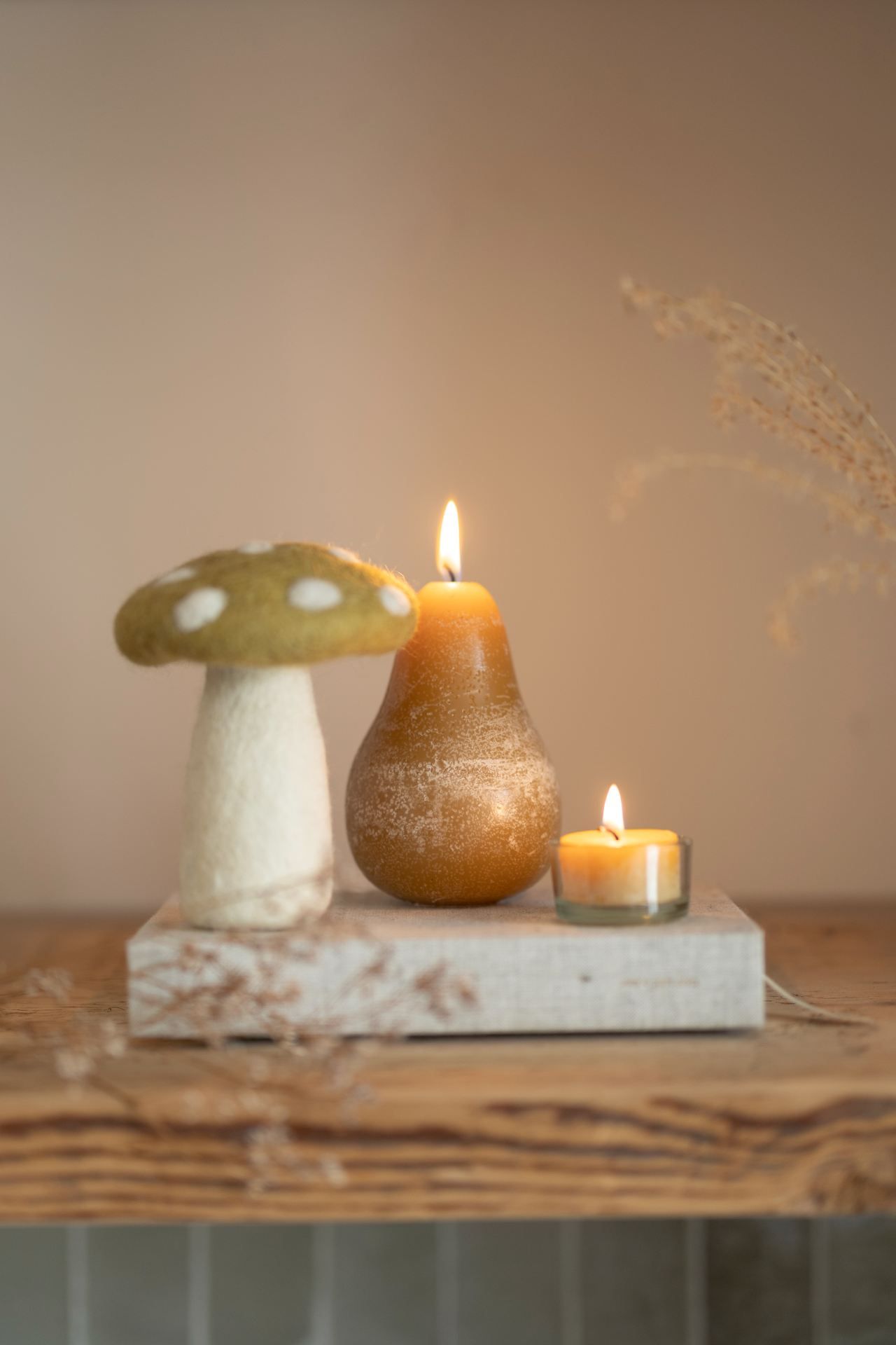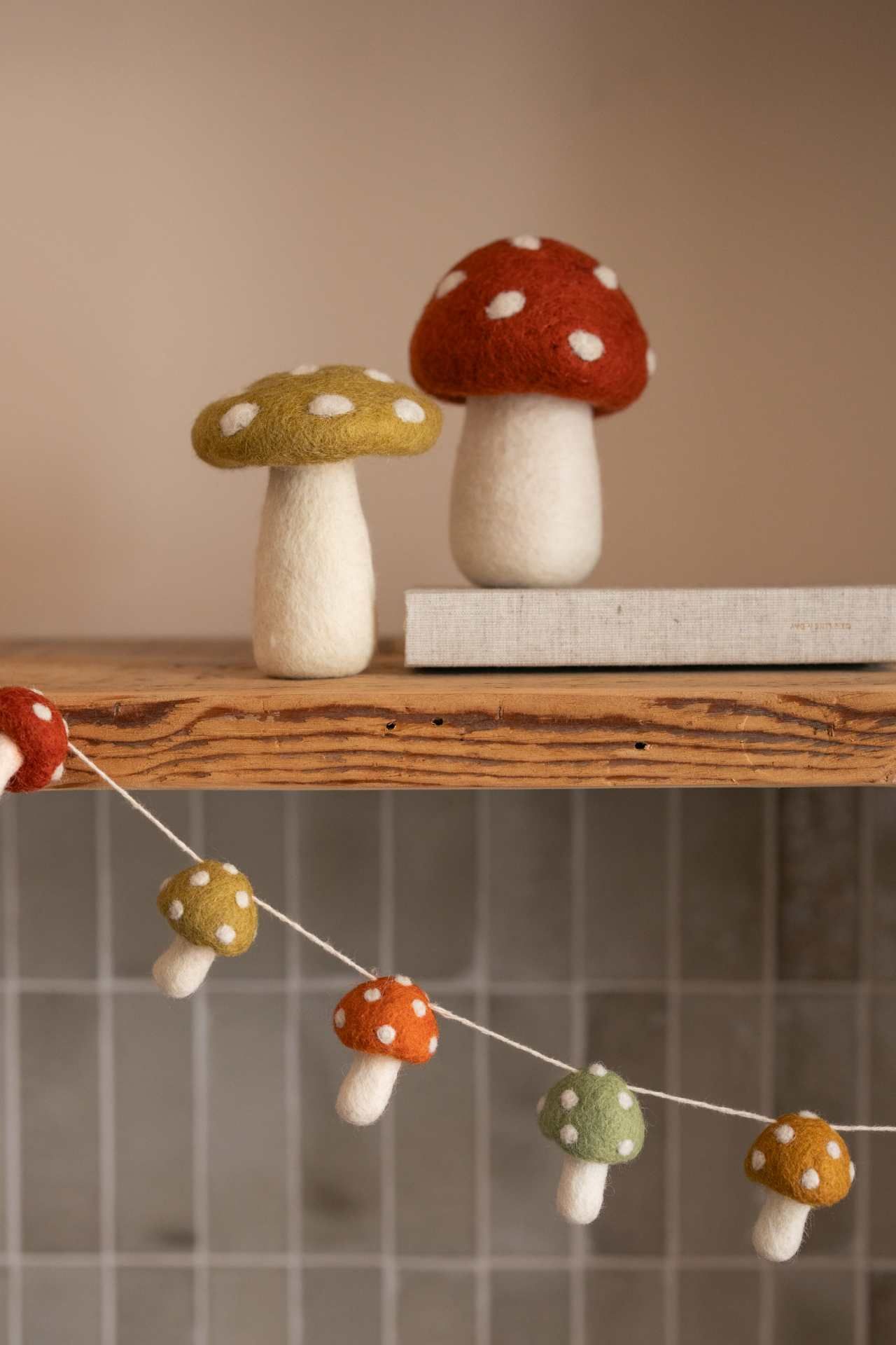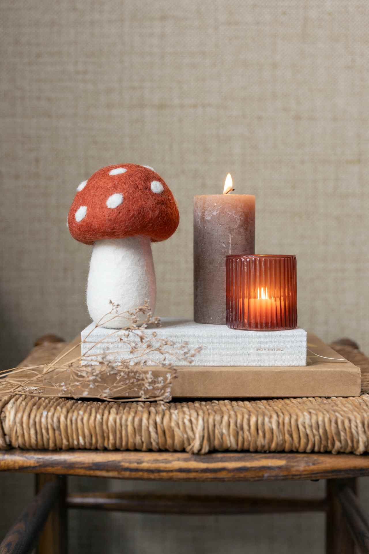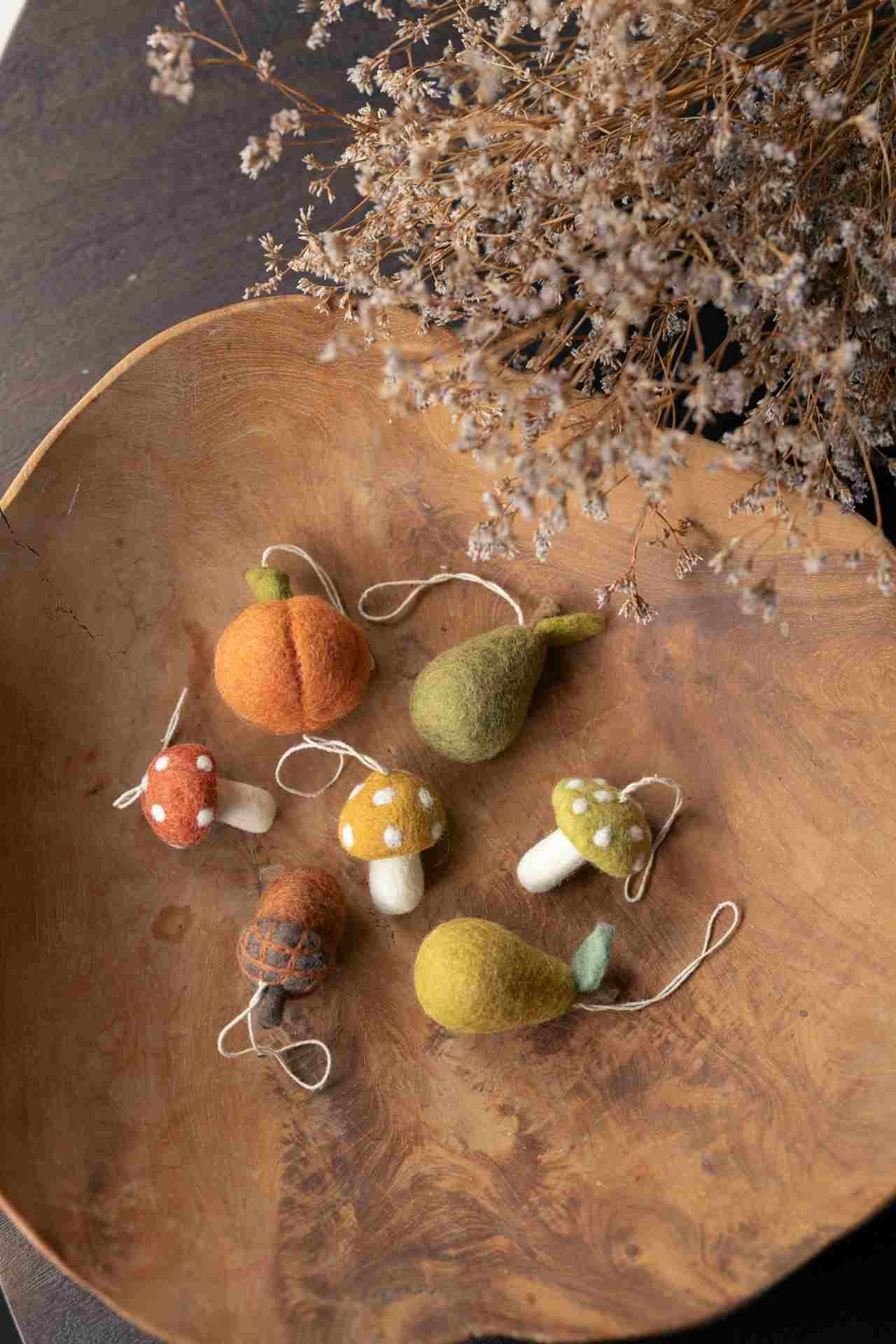- Vilten herfstdecoratie zoals paddenstoelen en pompoenen.