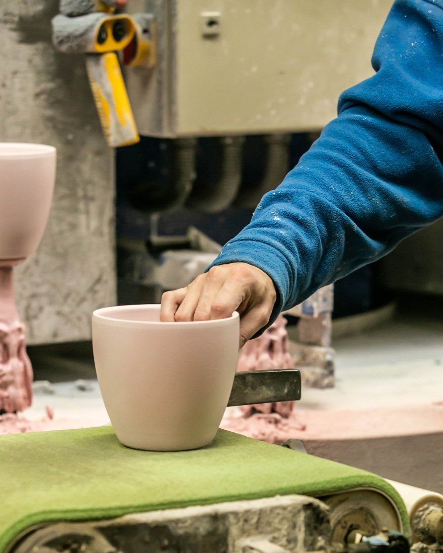 Onze bloempotten worden gemaakt in een Nederlands familiebedrijf. Tot voor kort ging alles hier nog met de hand. Nu gebruiken ze wel machines, maar het blijft echt vakwerk. We bewonderen de mallen: zo krijg je dus al die verschillende vormen! En waar zijn die bijzondere rollen met stippen en ribbels voor? We krijgen uitleg: "Daarmee drukken we – uiteraard voordat de potten worden gebakken – er het patroon in dat we samen met Dille & Kamille hebben uitgezocht."