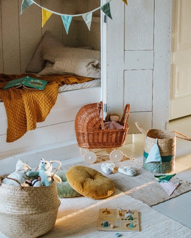 Een gekleurde vlaggenlijn in een kinderkamer staat het hele jaar door gezellig, niet alleen op verjaardagen!