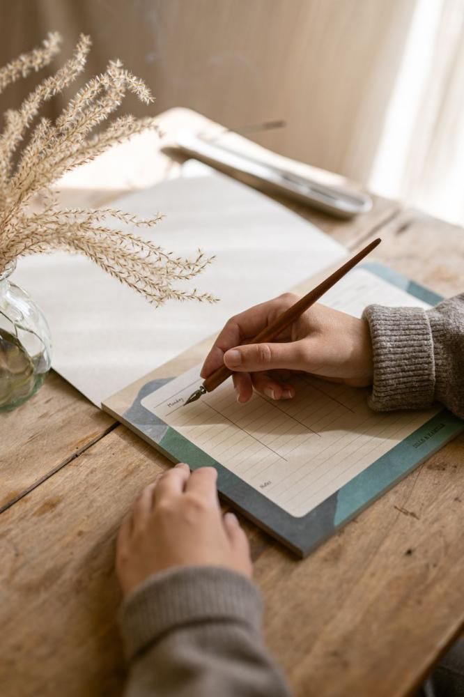 Een lijstje maken (in een leuk notitieboekje natuurlijk!) zorgt voor rust in je hoofd. Ze creëren overzicht van de dingen die je moet doen of zeker niet mag vergeten. Dat geeft rust: het staat in je schrift en kan dus uit je hoofd.
