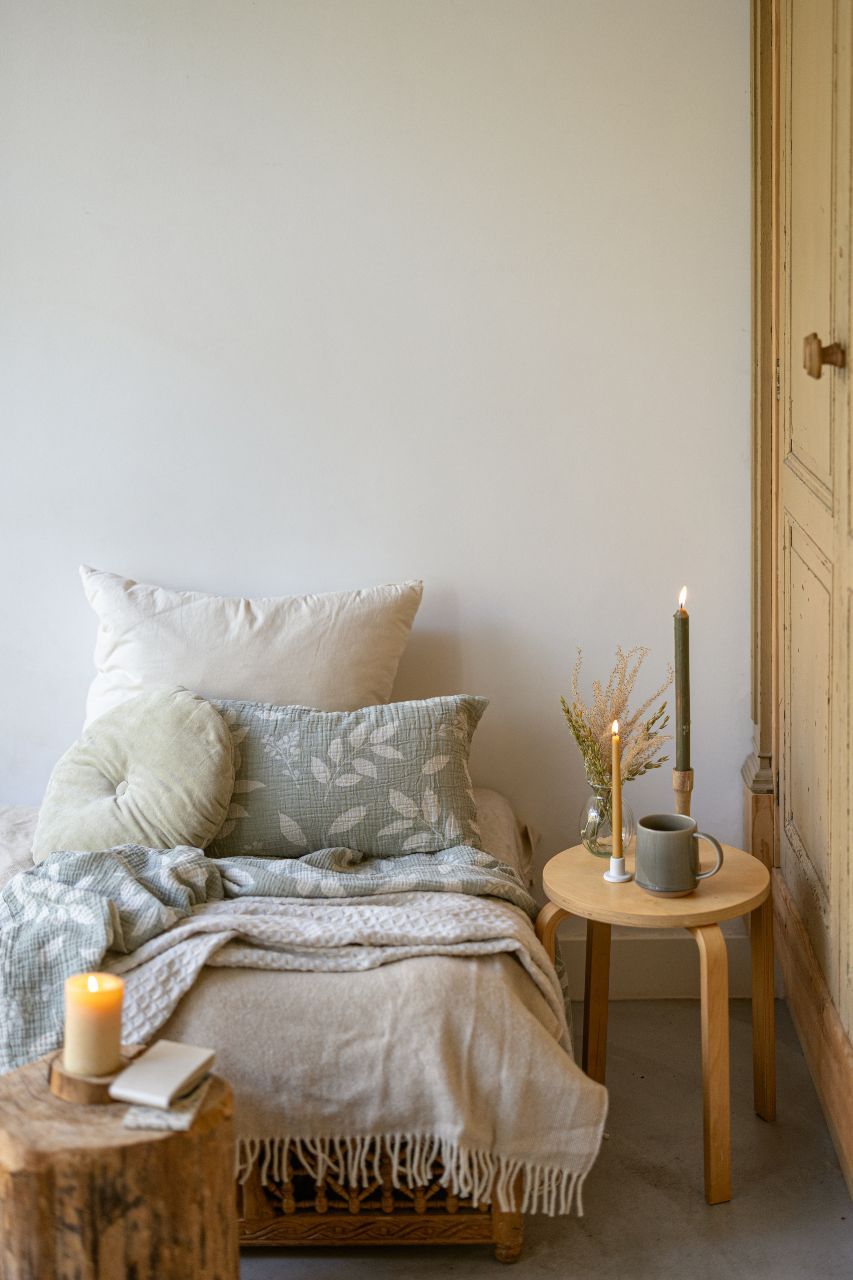 Creëer je eigen, dagelijkse slaapritueel en bereid je een uurtje voor je naar bed gaat op een fijne nacht. Zorg voor frisse lucht op je slaapkamer. Is het koud? Leg alvast een kersenpit kussen of een kruik onder je deken om je bed voor te verwarmen.